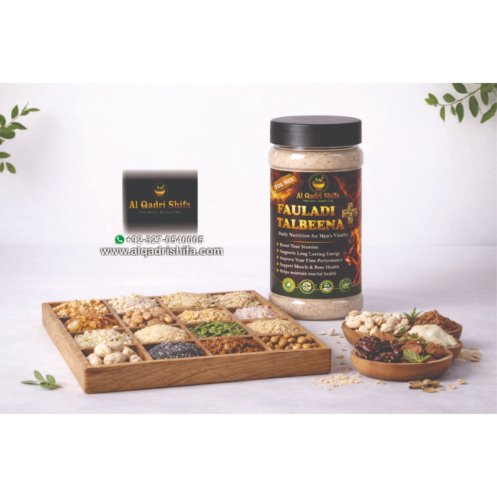 Fuladi Talbeena + is a premium barley-based nutritional drink prepared according to traditional herbal wisdom. Specially crafted for married men, it supports stamina, strength, digestion, and overall vitality—naturally and safely.